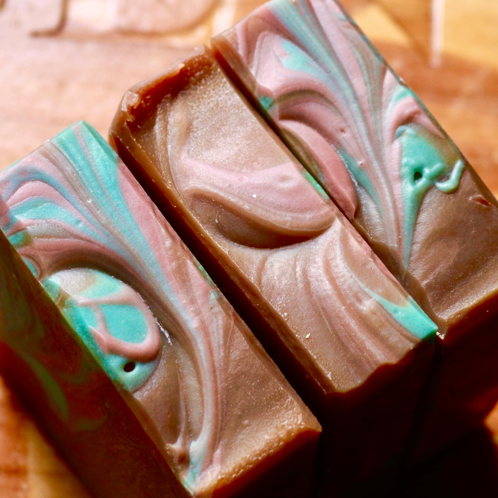 Ingredients: Made in small batches with coconut oil, olive oil, castor oil, sustainable palm oil, lye, filtered water, fragrance and essential oils, cocoa butter, shea butter, kaolin clay, and micas for color.