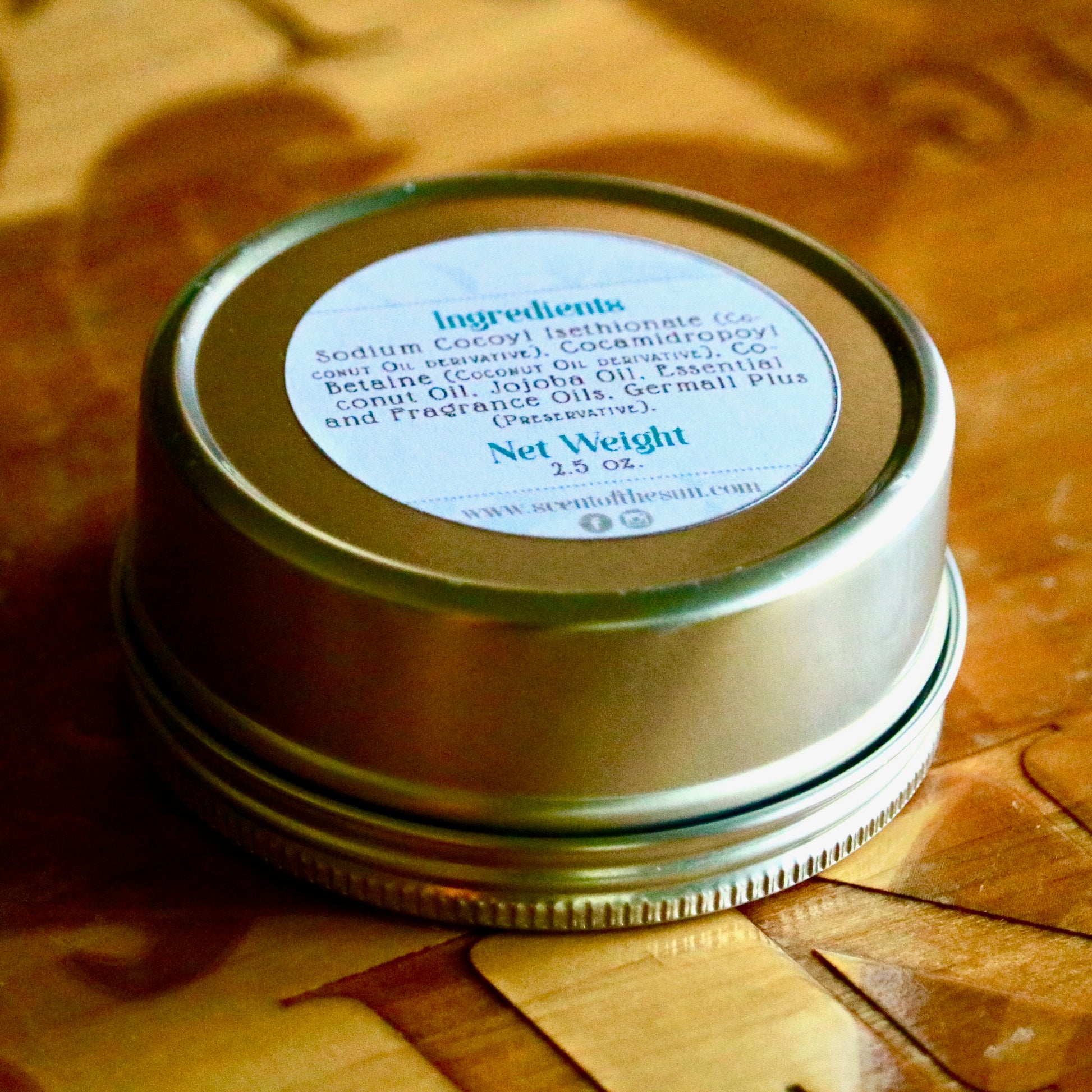 Ingredients: Made in small batches with sodium cocoyl isethionate (coconut oil derivative), cocoamidropoyl betaine (coconut oil derivative), coconut oil, jojoba oil, essential and fragrance oils, Germall Plus (preservative).